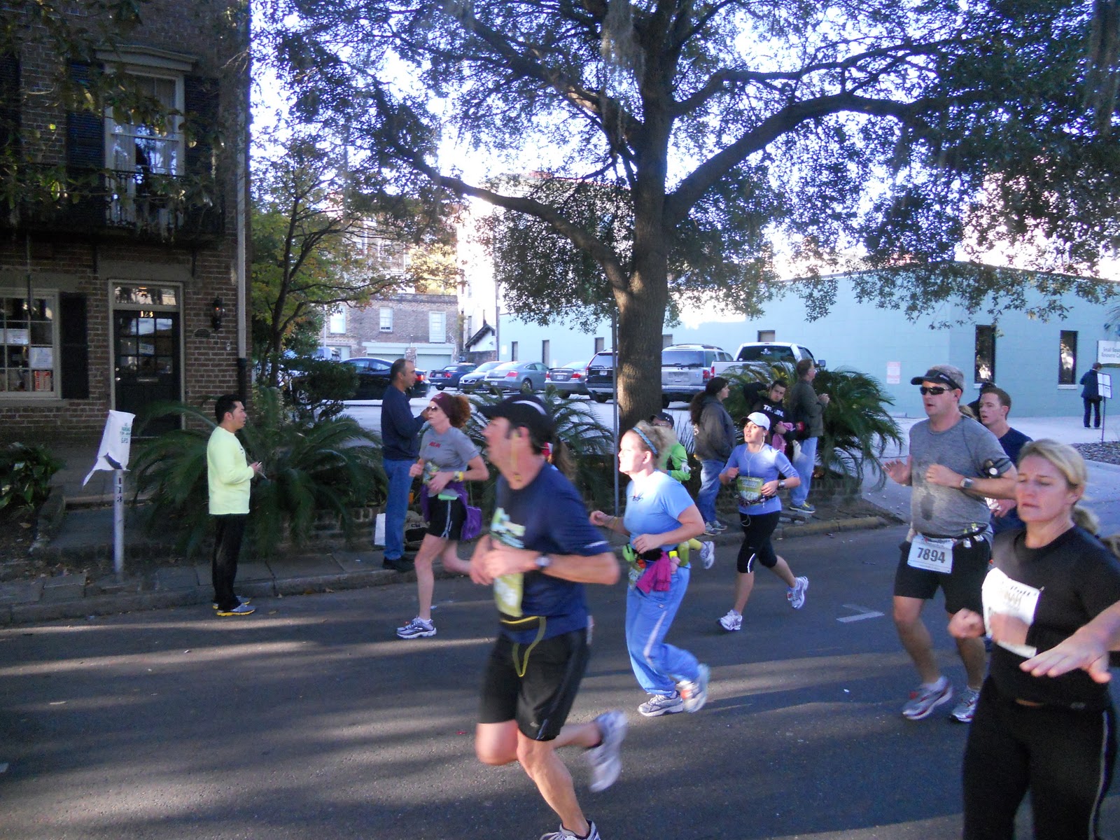 Since I'm fairly familiar with Savannah, I knew that Savannah Mall was quite a ways from the start and that we'd need to build in a lot of extra time just for the bus ride to the start. When we got close to the mall there was a ton of traffic going in to park, but we eventually made it in and then walked to the buses.